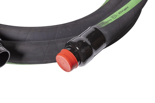 Crafted for high-pressure environments, it is assembled with grooved ends for secure, leak-resistant connections. The green stripe design allows for easy identification and differentiation from other hoses.